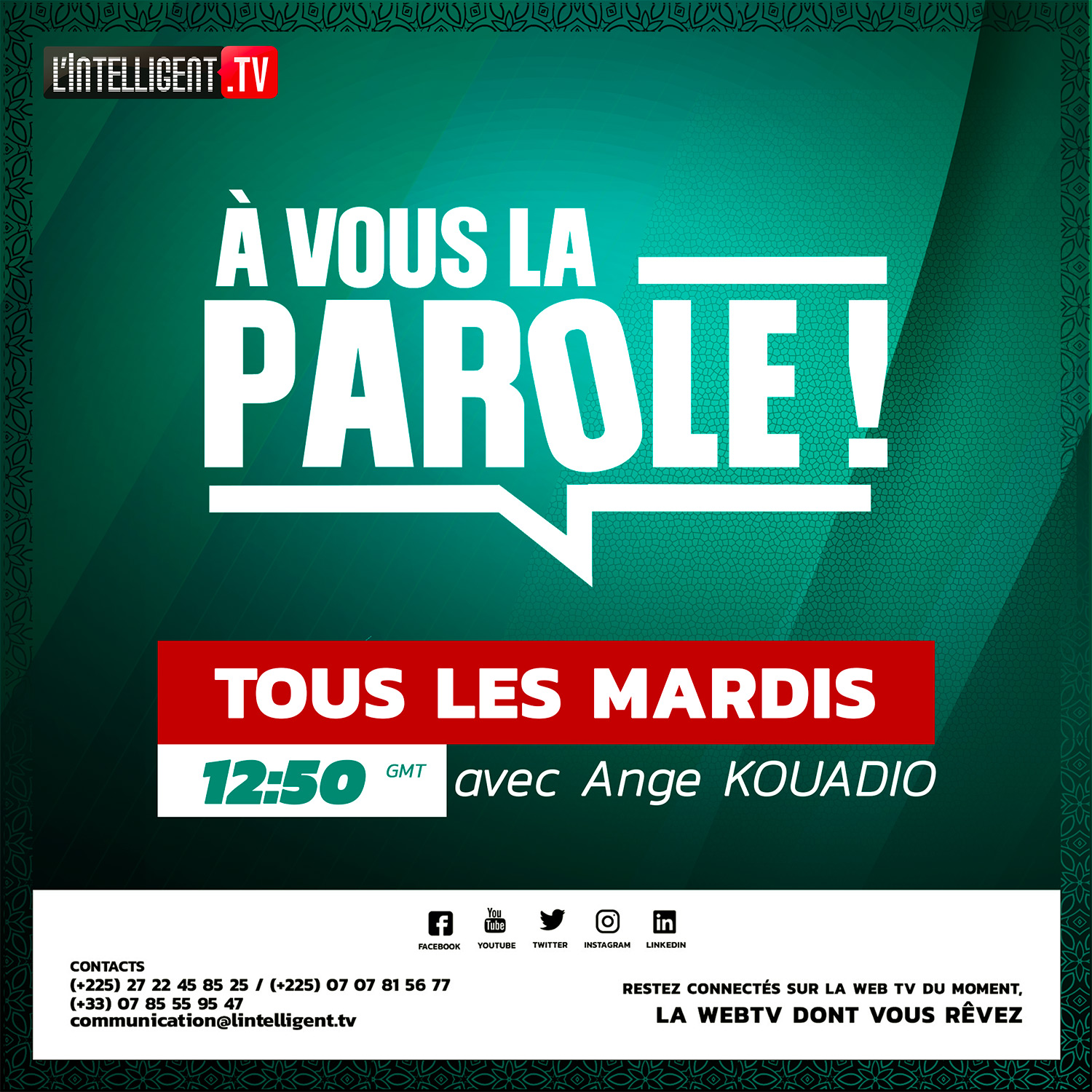 Tous les mardis à 12h50